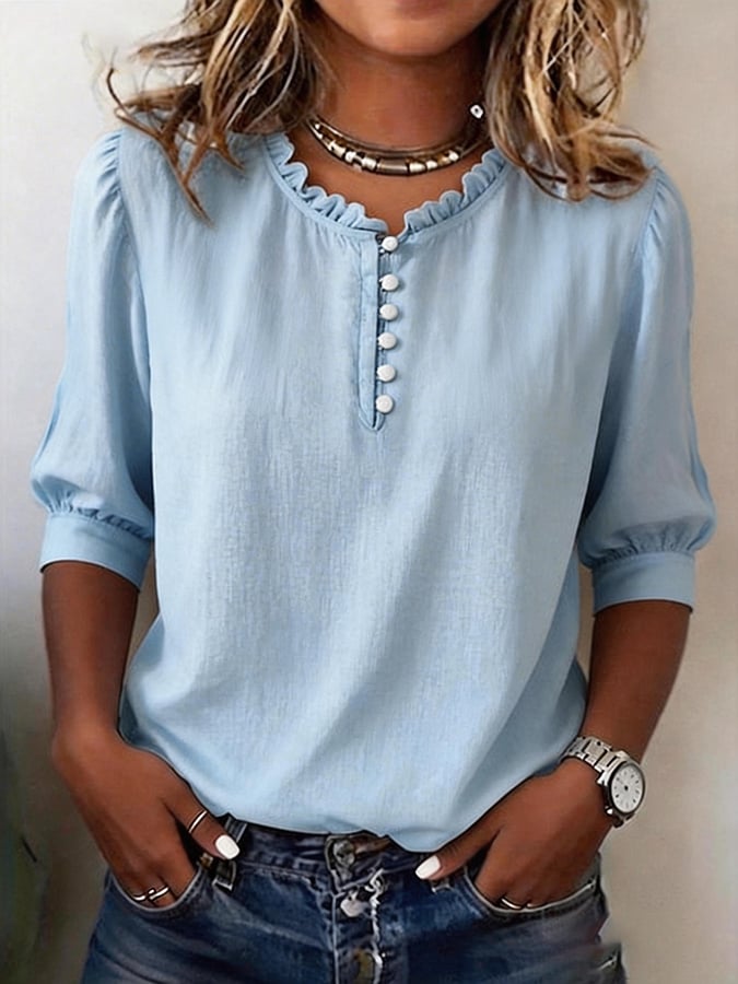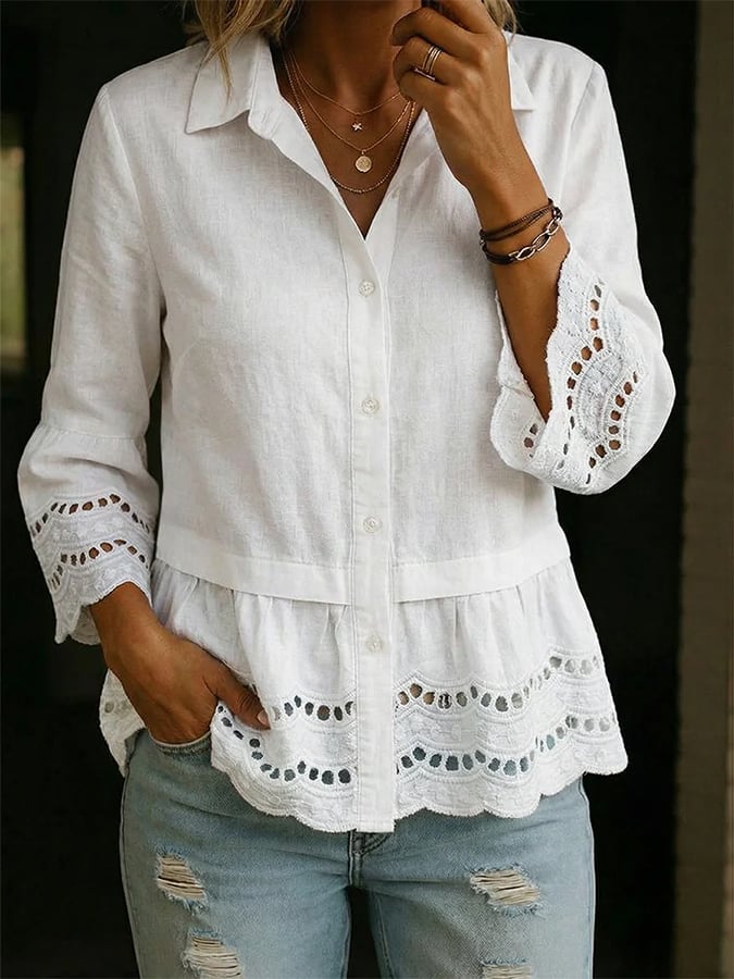 Women's Retro Ruffle Collar Cotton Linen Shirt