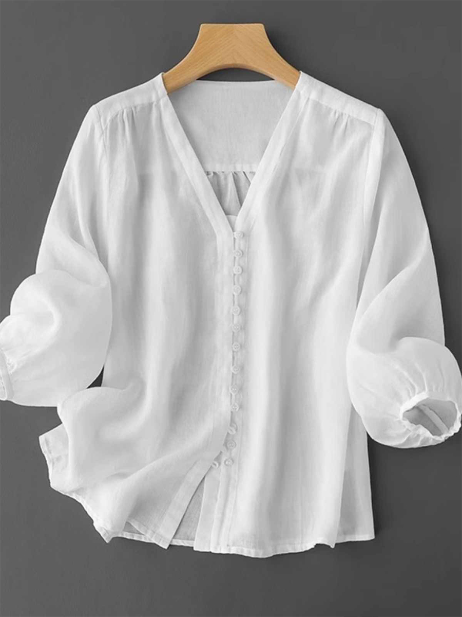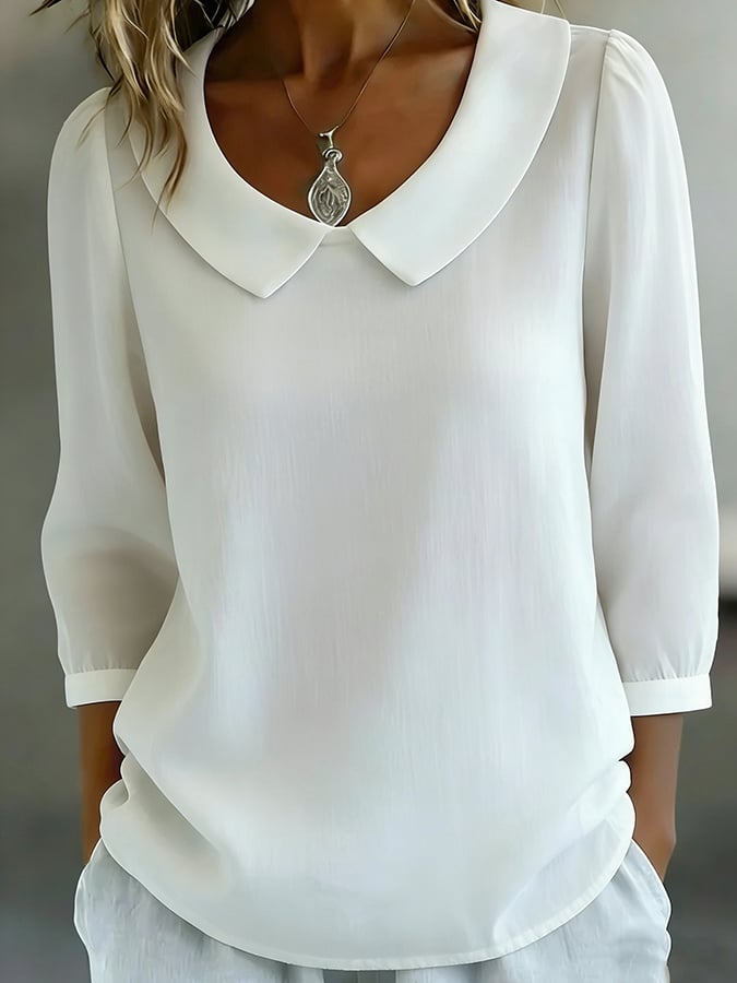 Women's Retro Peter Pan Collar Cotton Linen Shirt