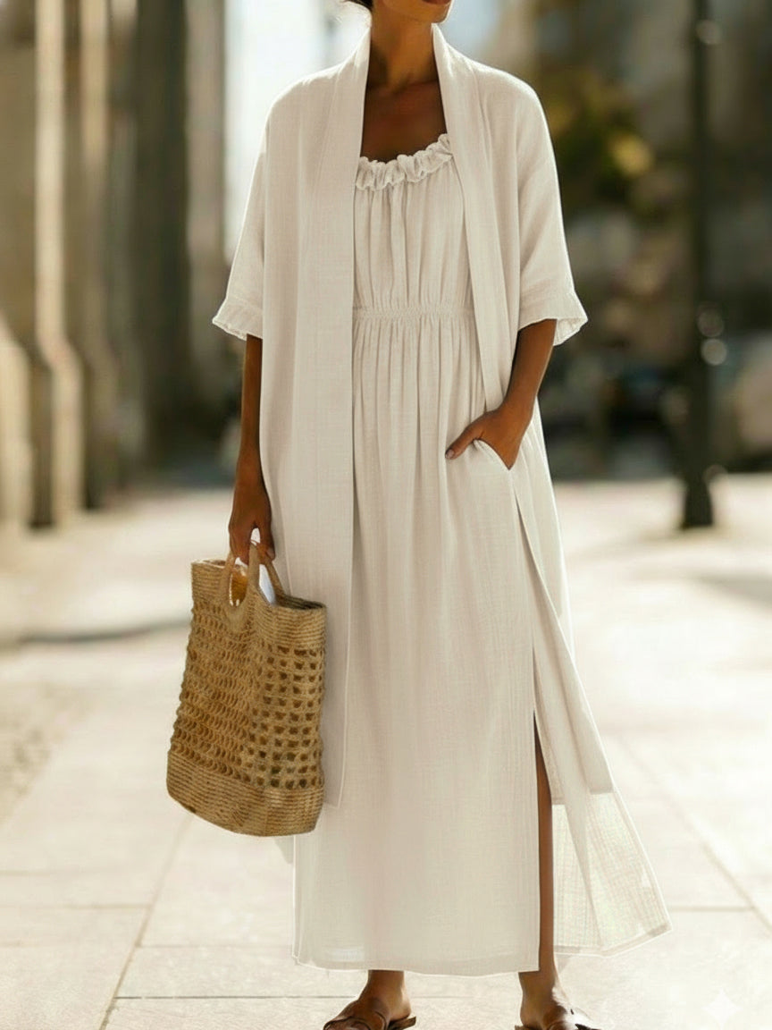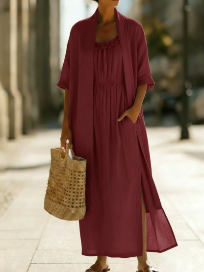 This Minimalist Linen-cotton Two-piece Set is designed for women who seek comfort without sacrificing style, allowing you to enjoy a relaxed and carefree wearing experience.