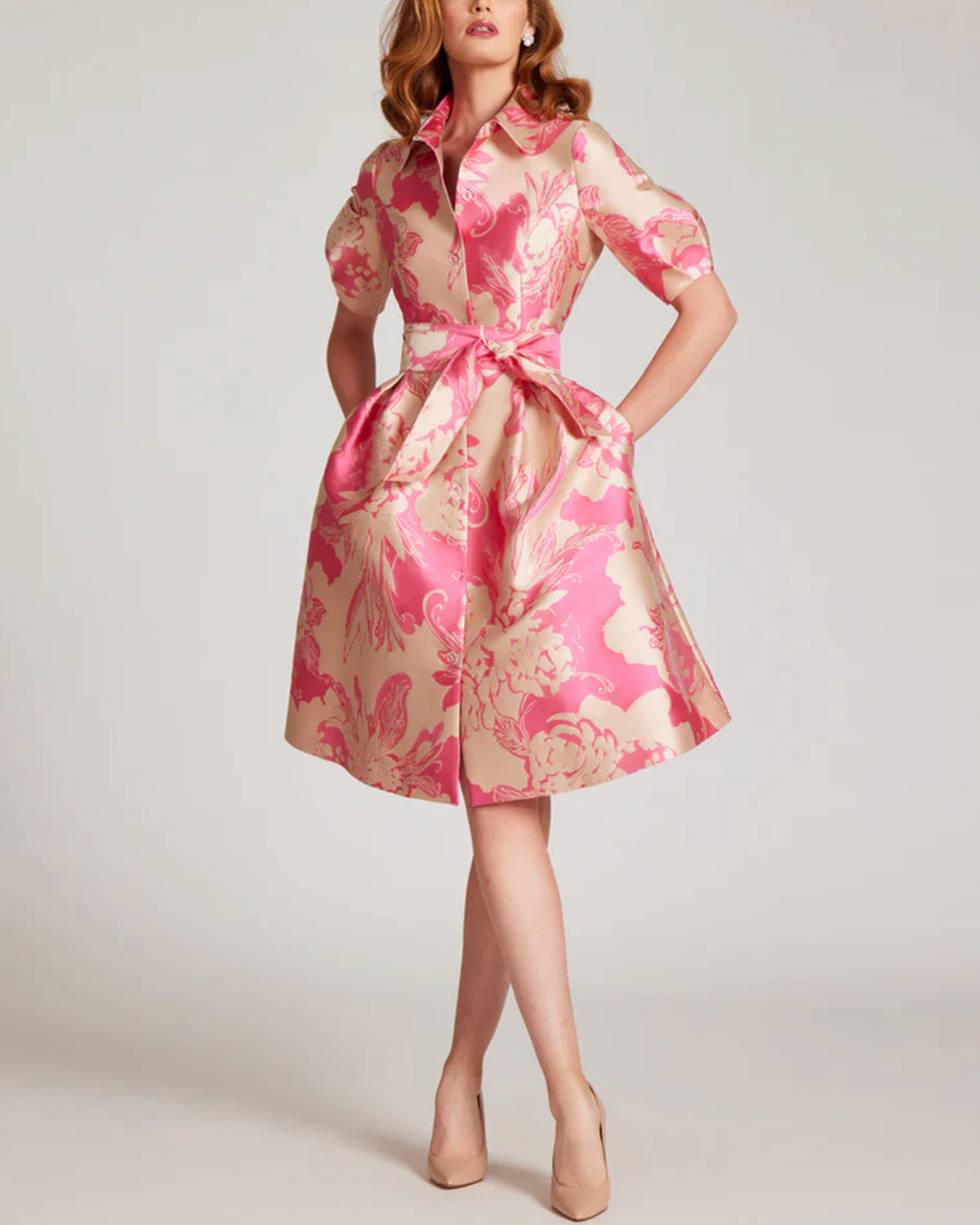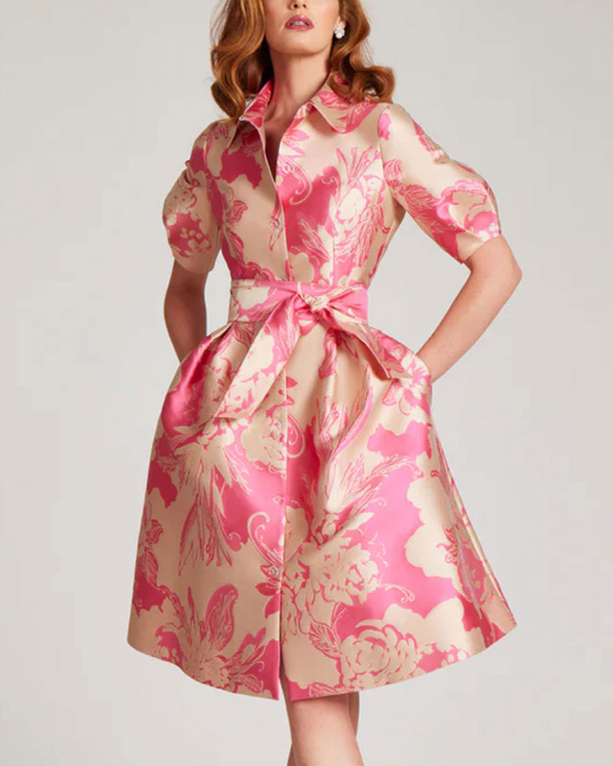 Puff Sleeve Abstract Print Collared Shirt Dress