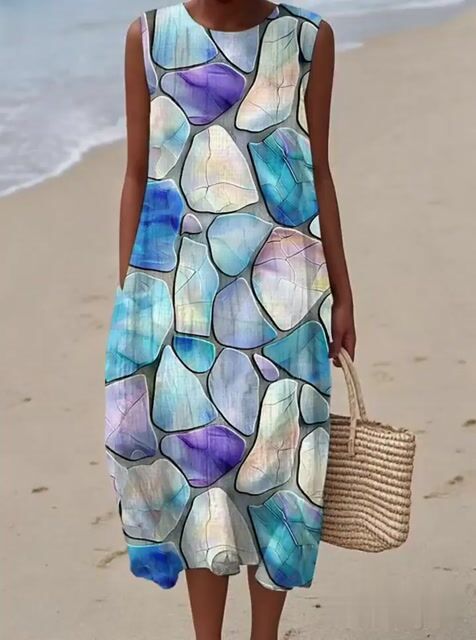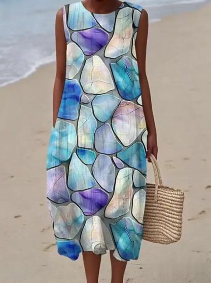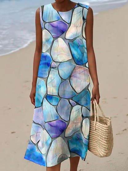 Women's Casual Contrast Printed Round Neck Sleeveless Dress