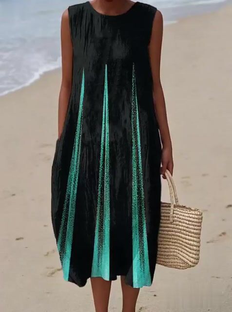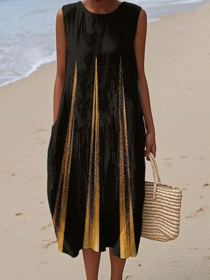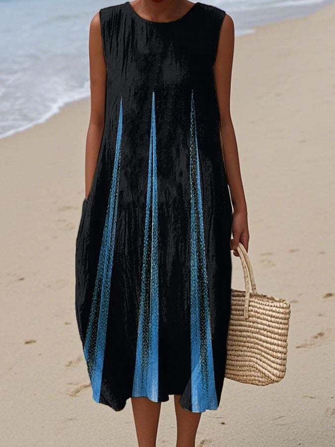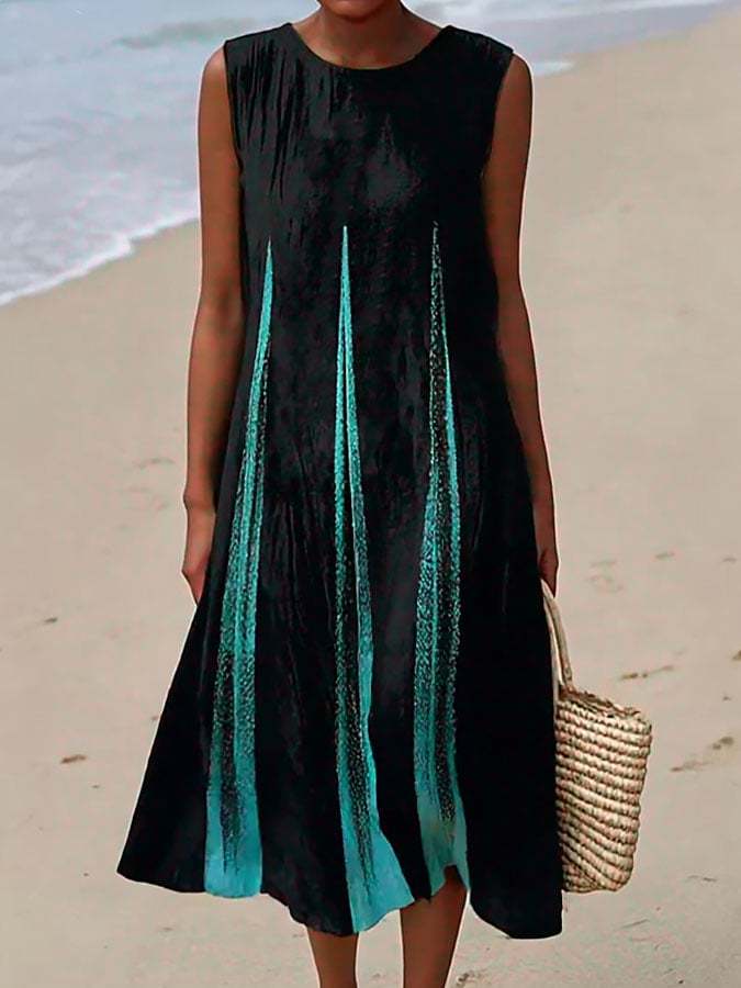 Women's Casual Contrast Printed Round Neck Sleeveless Dress