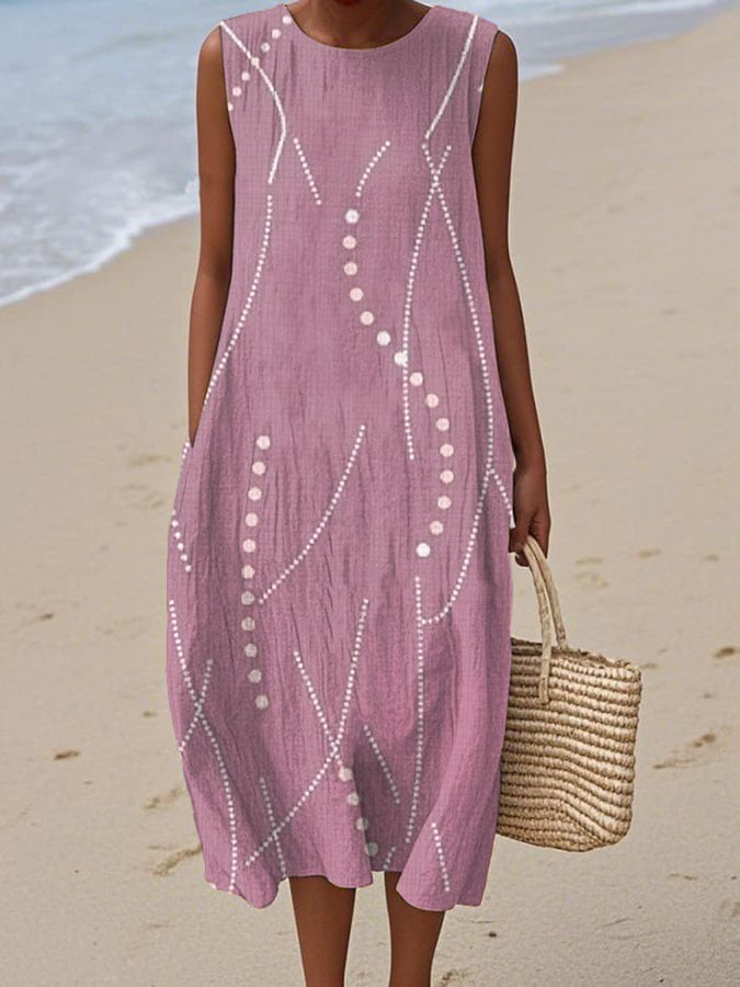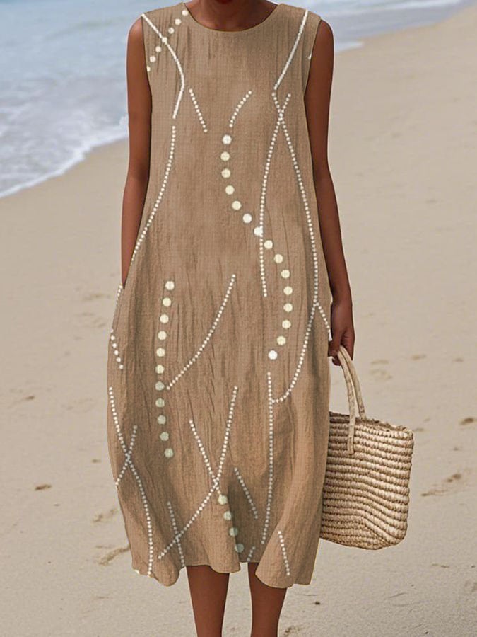 Women's Casual Contrast Printed Round Neck Sleeveless Dress