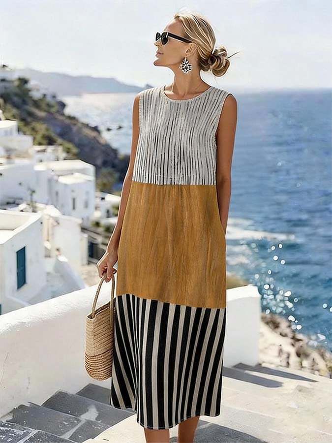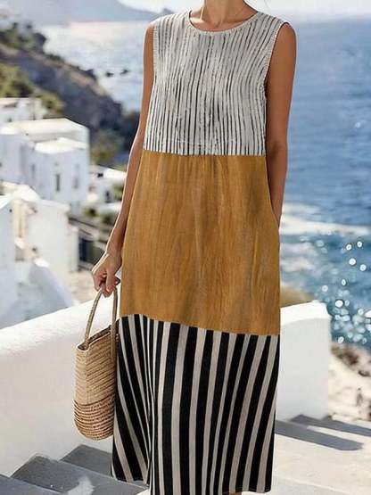 Women'S Casual Printed Round-Neck Sleeveless Dress