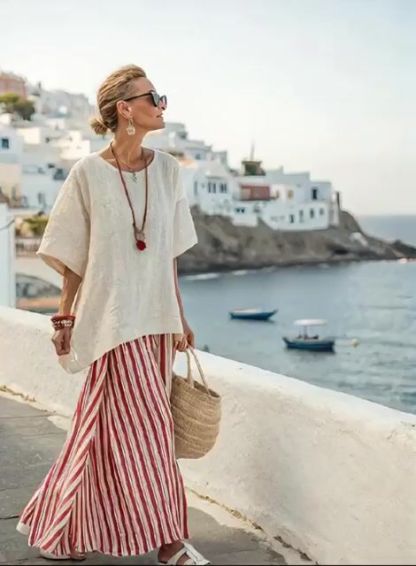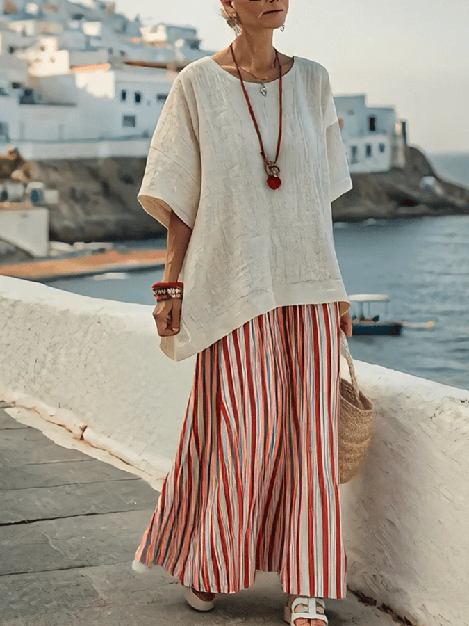 Women's Loose Striped Skirt Suit