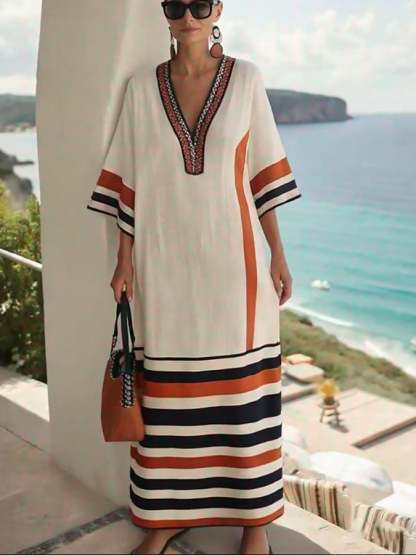 Women'S Loose Striped Print Dress