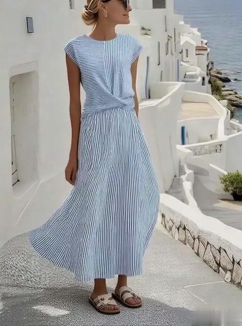 Women's Resort Stripe Print Round Neck Short Sleeve Dress