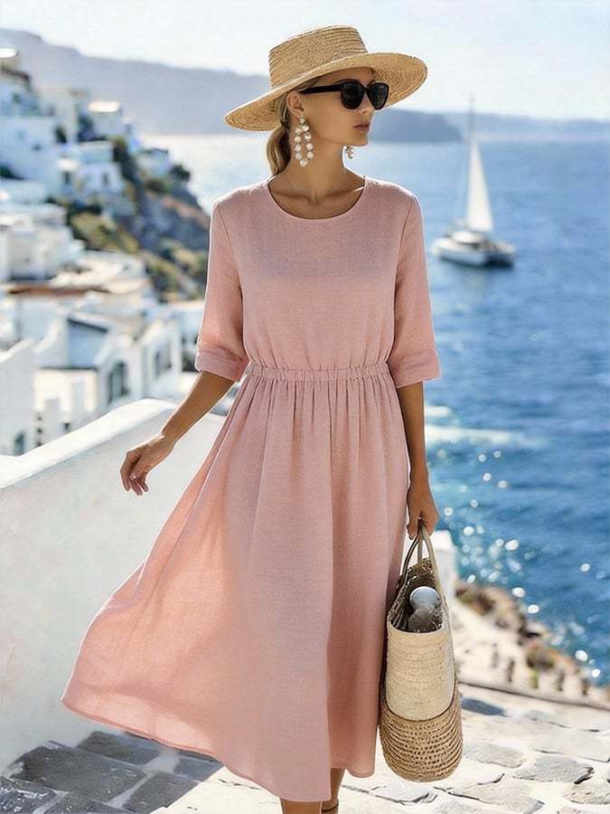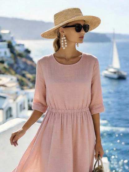 Women'S Solid Color Round Neck Loose-Fitting Vacation Dress