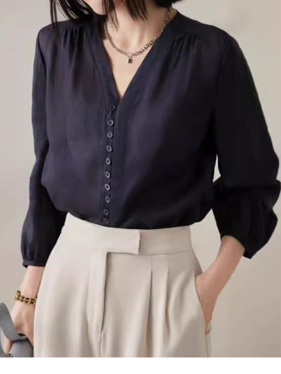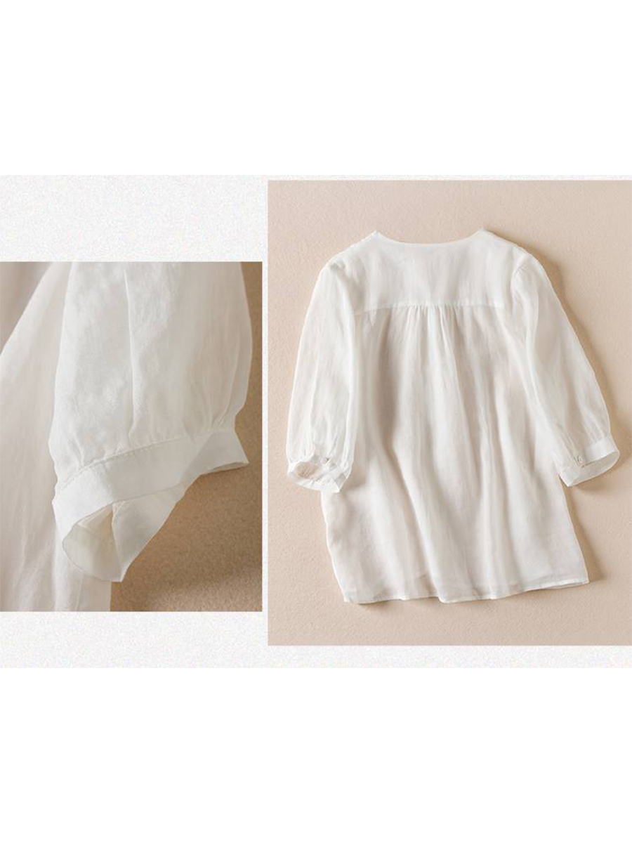 Women's V Neck Cotton and Linen Shirt